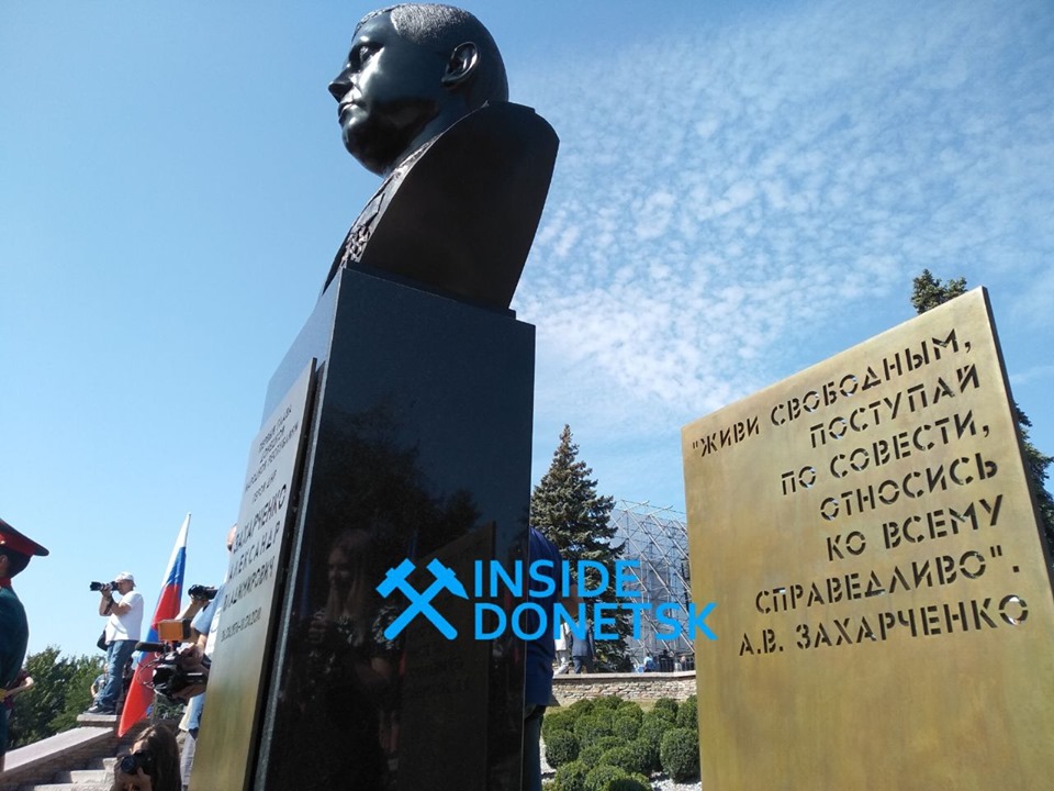 Как стало известно, бюст изготовлен по заказу уроженца Донбасса мецената Владимира Некрасова. Возле памятника установлены две плиты. На одной из них выгравирована «цитата» Захарченко: «Живи свободным, поступай по совести, относись ко всему справедливо». На второй плите надпись: «Отдавшему жизнь ради тысяч других сердец. Навсегда первому Главе ДНР».