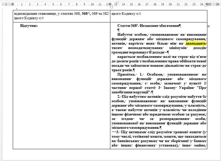 Ошибка найдена в президентском проекте под номером 1031. В тексте документа указано, что уголовная ответственность чиновника наступает, когда общая стоимость имущества превышает 15 тысяч необлагаемых налогом минимумов. При этом в сравнительной таблице указана цифра 12 тысяч.