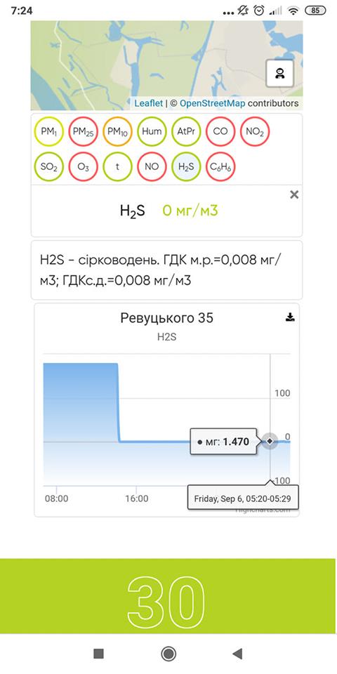 «Сероводород в большом количестве. 1.4 мг/м3 при норме 0.008 мг/м3», - пишут люди.