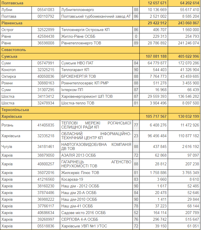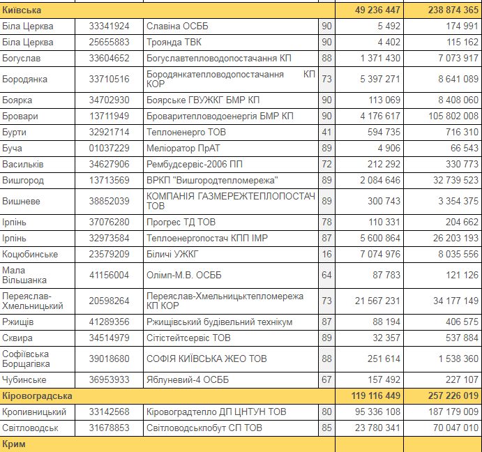 «Нафтогаз» начал публиковать информации о производителях тепла, у которых сложилась критическая ситуация с оплатой услуг.