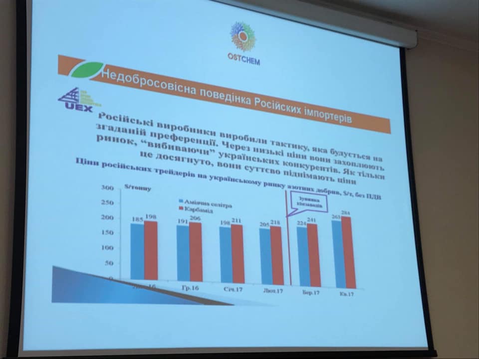 По словам Терентьева, заводы Ostchem сознательно не рассчитывались с Укртрансгазом за газ, спровоцировав приостановку поставок топлива с марта по июнь 2017-го. «Юридически такие действия можно квалифицировать как злоупотребление монопольным положением из-за искусственного ограничения производства удобрений», — заявил он.