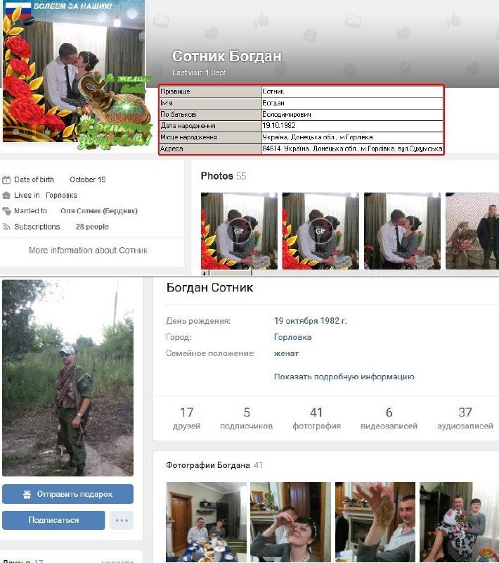Сайт "Миротворец" сообщает, что Богдан Сотник народился 19 октября 1982 года в Горловке, Донецкой области. Числился боевиком незаконных вооруженных формирований. На странице в соцсетях отмечено, что Сотник был женат.