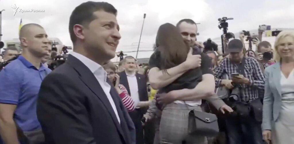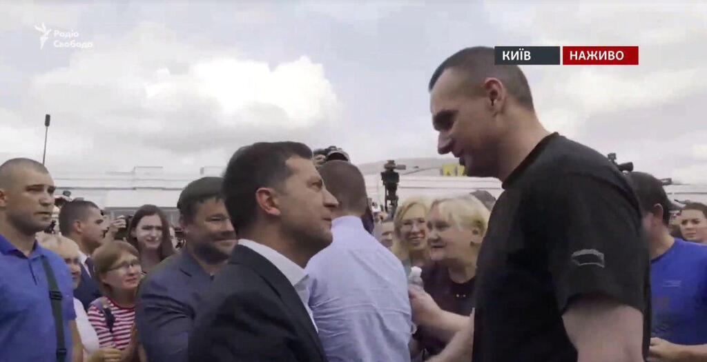 На первых исторических кадрах видно, что Сенцова встречает президент Владимир Зеленский, а также его дочь Алина.