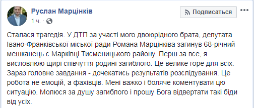 В то же время, мэр Ивано-Франковска Руслан Марцинкив сообщил, что за рулем микроавтобуса был его двоюродный брат Роман Марцинкив.