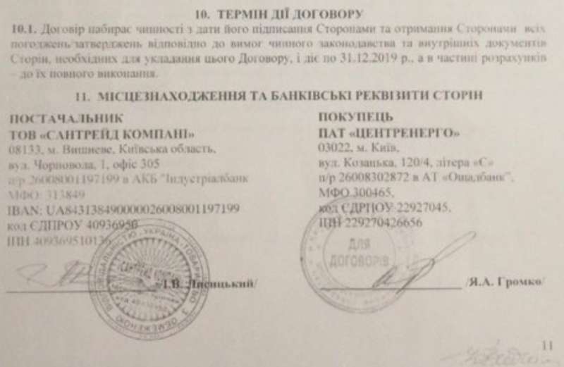 Сделку от «Центрэнерго» 3 сентября подписал первый замдиректора Ярослав Громко. Договор представляет собой открытую сделку на поставку угля определенных марок до конца 2019 года.