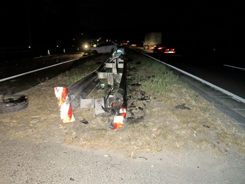 Предварительно установлено, что оба автомобиля двигались в сторону Белой Церкви, однако водитель Skoda решил развернуться. Не заметив его маневра, двигавшийся сзади Seat ударил Skoda по касательной, после чего потерял управление и врезался в отбойник.