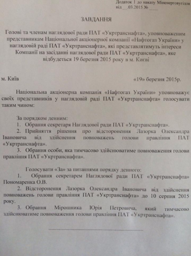 Лещенко оприлюднив докази відсторонення Лазорка від керівництва «Укртранснафтою» (ДОКУМЕНТ)