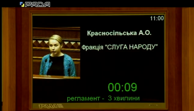 После этих слов Красносельская быстро добежала до трибуны и зачитала доклад о законопроекте "О внесении изменения в Закон Украины "О Высшем антикоррупционном суде". При этом она очень нервничала и немного запиналась.