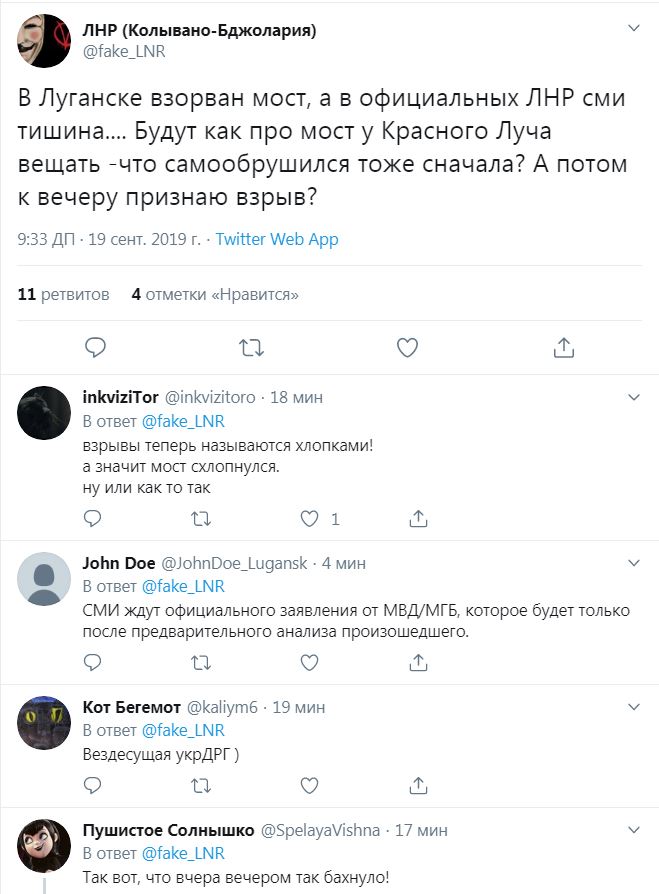 Сообщается, что взрыв прогремел около полуночи, однако местные «власти» до сих пор ничего не сообщили по этому поводу. В то же время в сети опубликовали фото перекрытого моста в Луганске с комментарием: «Мост на Лутугинской, рядом с СТО «Император».