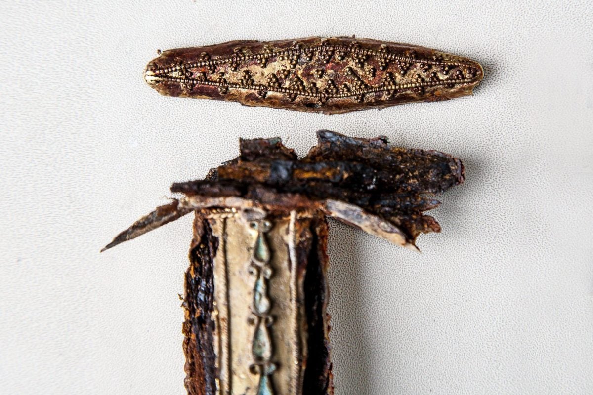По данным специалистов, речь идет о погребальном комплексе, состоящем из двух могил. И если одно из захоронений, в котором был похоронен пожилой мужчина, было разграблено в древности, то второе осталось не тронутым до наших дней. В нем найдено множество уникальных вещей. Они находились вместе с костями человека 18-20 лет, который, скорее всего, был оруженосцем мужчины, похороненного в соседней могиле.