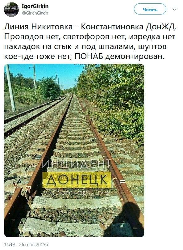 Там на линии фронта фотограф запечатлел на фото разбитую и разграбленную со стороны боевиков "Л/ДНР" железную дорогу. Данную фотографию он опубликовал на своей странице в Facebook.