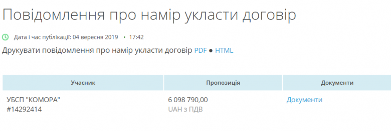 Всего с 2008 года “Комора” получила государственных подрядов на 76,50 млн грн.