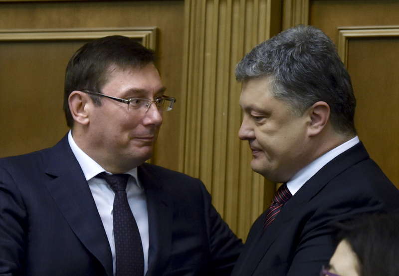 Юрий Луценко после назначения генеральным прокурором Украины и президент Петр Порошенко в 2016 году. Фото: РИА Новости