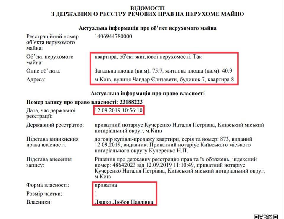 И пока Ляшко размышляет каким образом ему вернуться в большую политику, его мать в очередной раз пополнила свой фонд недвижимости. Любовь Павловна уже по завершению предвыборной кампании сына, стала владелицей квартиры на Осокорках (левый берег Киева) и гектара земли в городе Носовка (Черниговская область).