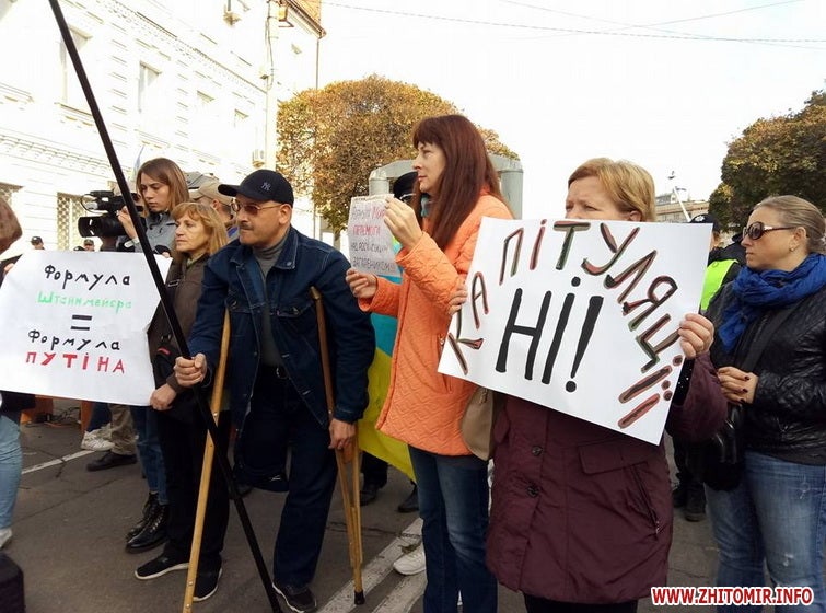 «Нет капитуляции!»: В Житомире Зеленского встретили митингующие