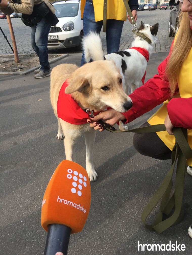 «Ми вийшли на вулиці Харкова для того, щоб показати, що є собаки в притулку, вони класні і до них є сенс їздити. Що це безпечні собаки, вони повністю адаптовані до міста, вулиць та людей», — розповів один з організаторів акції Петро Полященко.