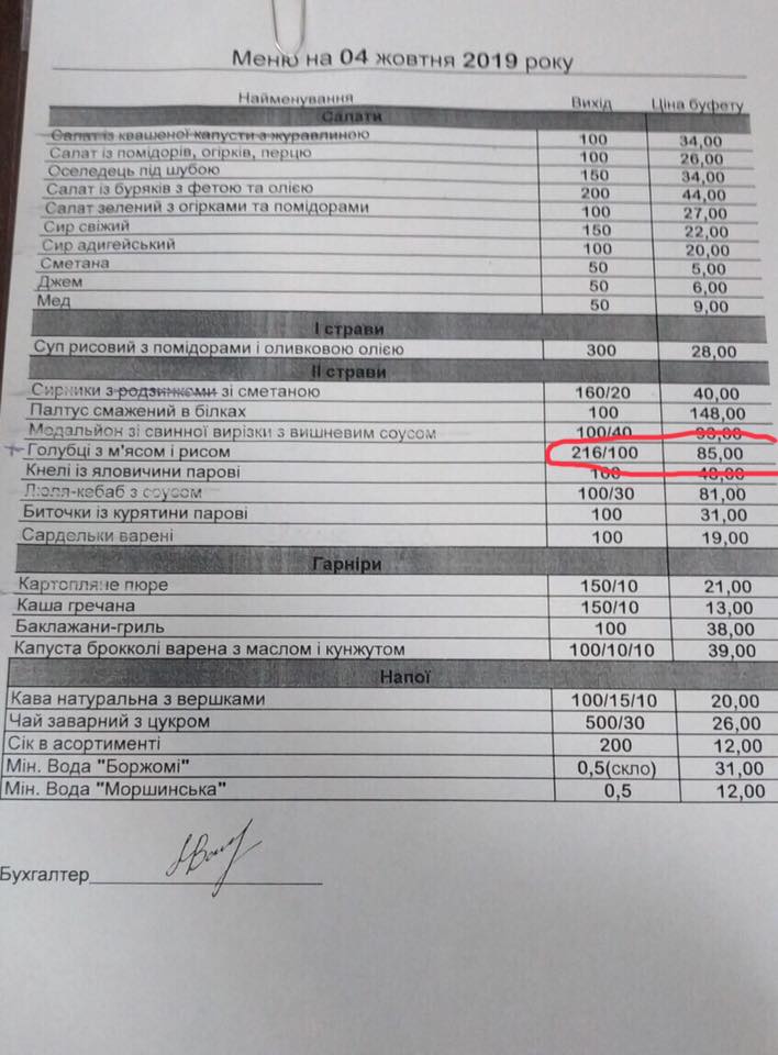 В столовой Верховной Рады депутату продали голубцы за 170 гривен