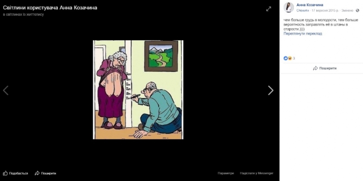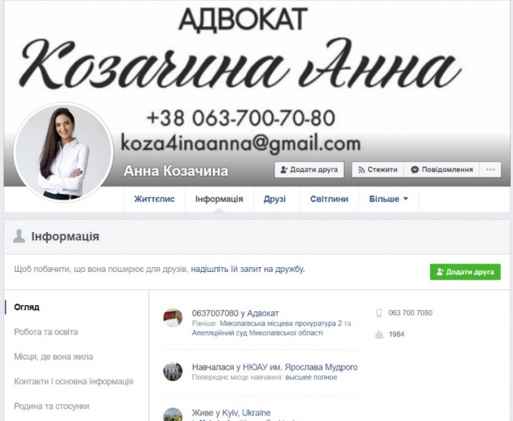 Некоторые изображения на странице адвоката Анны Козачины имеют непристойный характер и ксенофобское направление.