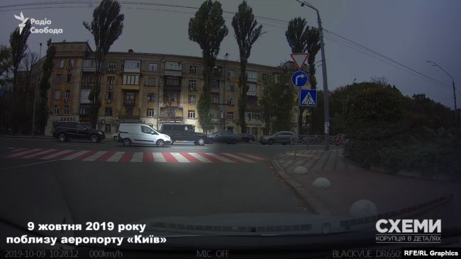 Через 10 хвилин після посадки літака «Схеми» зустріли кортеж Хорошковського біля аеропорту «Київ» імені Ігоря Сікорського.