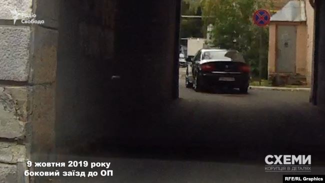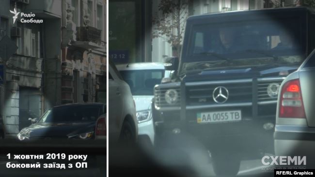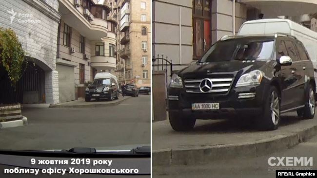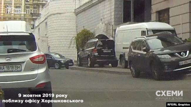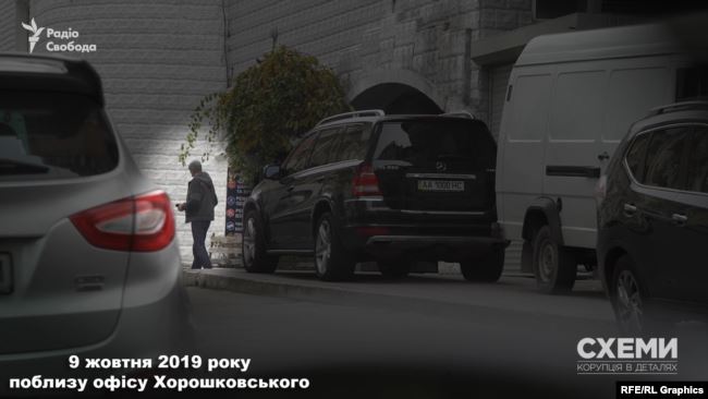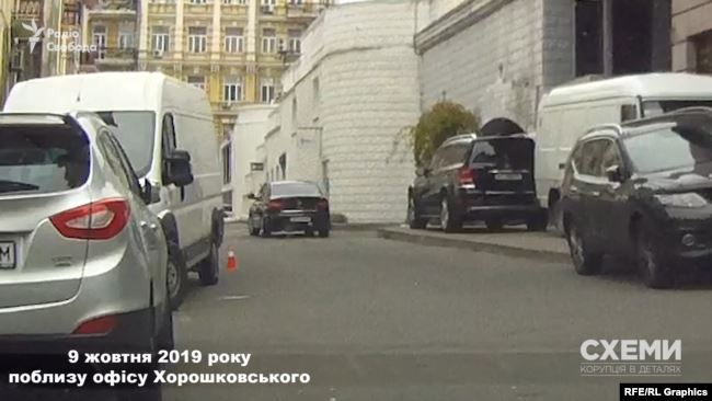 Відтак один з автомобілів знімальної групи «Схем» зупинився біля бокового заїзду до Офісу президента, а інший попрямував до будівлі, де, за інформацією журналістів, розташовується офіс Хорошковського. Саме там «Схеми» помітили автівку його супроводу.