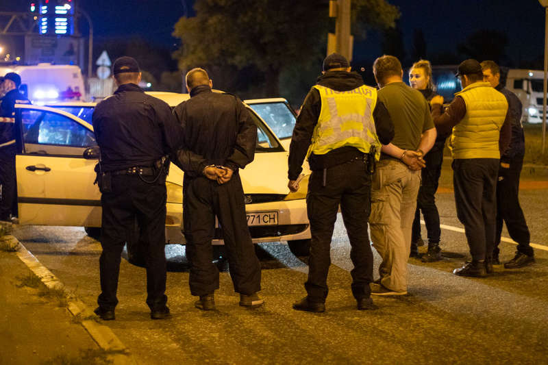 В ночь на 13 октября в Киеве на улице Заболотного возле табачной фабрики патрульная полиция задержала четверых мужчин с оружием и гранатами.