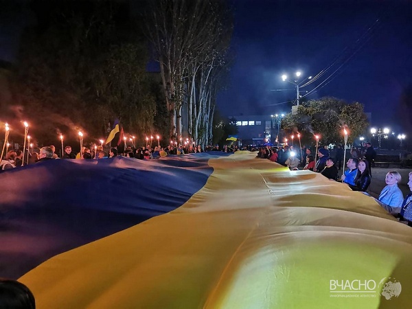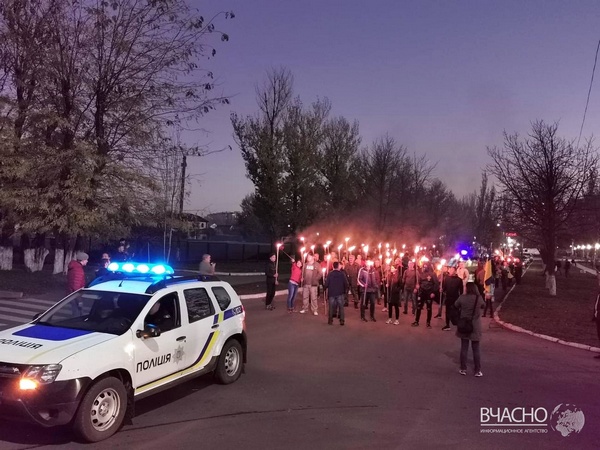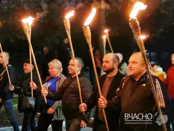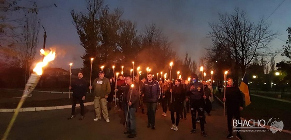 На Донбассе День защитника Украины отметили факельным шествием