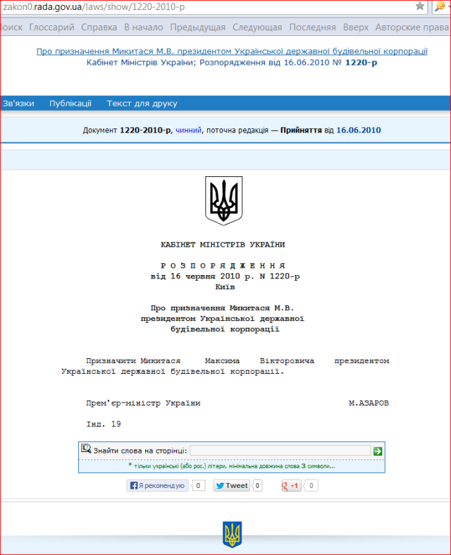 В открытом доступе о нем немного сведений, но все они какие-то нелестные. До того как занять свой нынешний пост, Максим Викторович уже успел поруководить строительными организациями. Так, еще до кризиса 2008 года он был генеральным директором и председателем правления ЗАО «Киевсоцбуд» (застройщик ЖК «Березки», г. Вышгород, официальный сайт комплекса). Но после того как на этом объекте разгорелся скандал (застройщиков обвиняли чуть ли не в организации схемы, аналогичной «Элита-Центр», подробности здесь) г-н Микитась покинул «Киевсоцбуд».