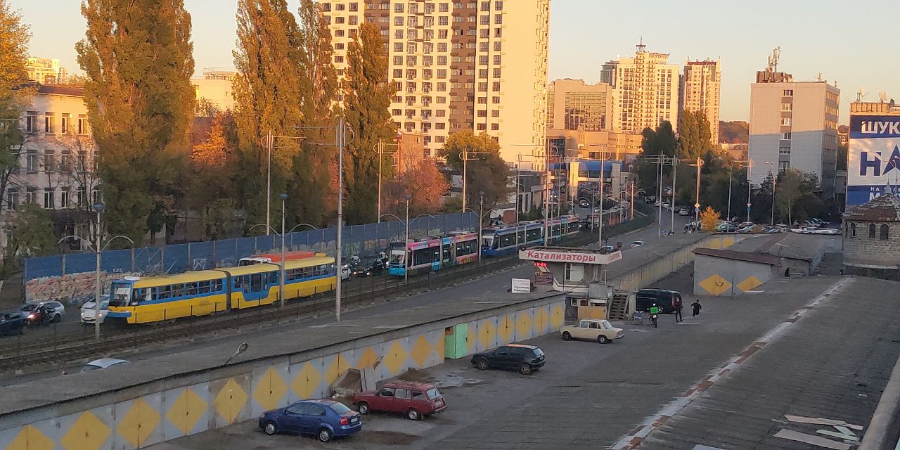 Не работает линия скоростного трамвая в сторону Борщаговки и центра.