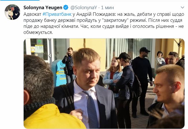 Начало судебных дебатов назначено на 10:30. По словам адвоката «ПриватБанка», они будут проходить в закрытом режиме.