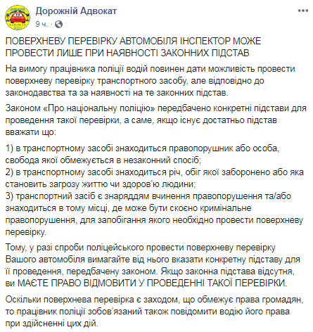 Согласно закону сотрудник полиции обязан сообщить водителю его права перед тем, как приступит к поверхностной проверке авто.
