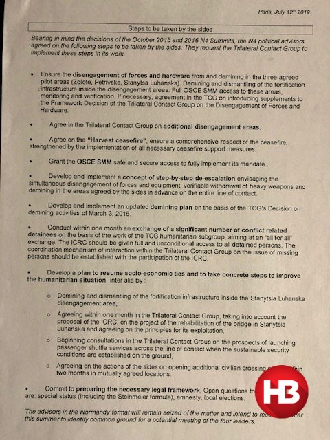 В нем говорится: «Информируем, что 12 июля 2019 года в Париже состоялись консультации в нормандском формате на уровне дипломатических советников лидеров Украины, Германии, Российской Федерации и Франции».