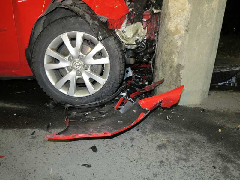 После столкновения Mazda с двумя пассажирками продолжила движение и ее остановил столб.