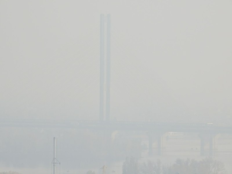 Левый берег не видно. Столицу окутал густой смог