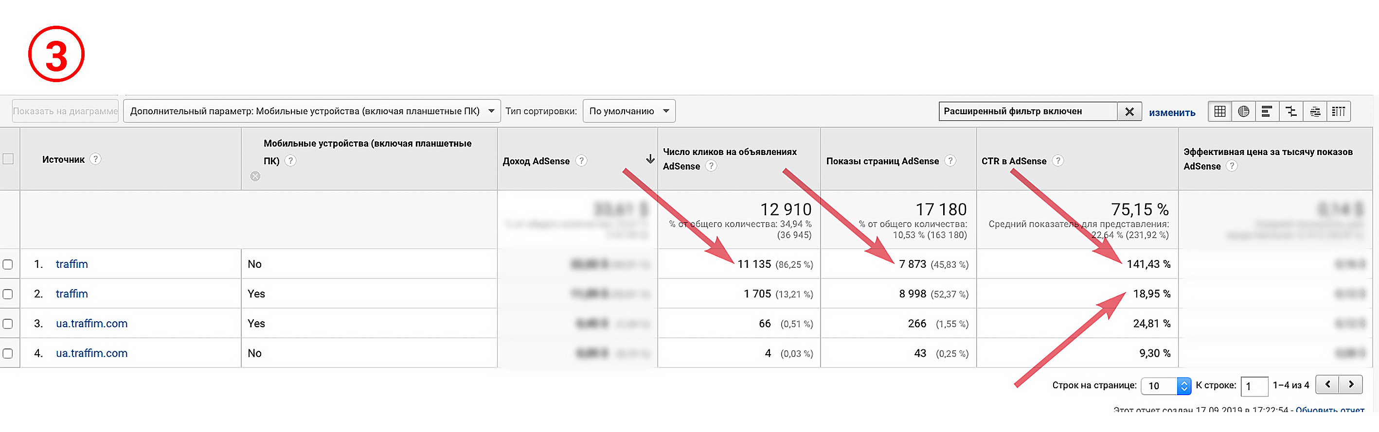 Таблиця 3 демонструє, як розподіляються кліки по рекламі на десктопних (стаціонарних) і мобільних пристроях.
