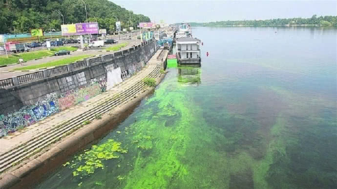 Из года в год становится теплее, люди активно сливают в канализацию моющие средства с фосфатами. Они попадают в Днепр, становятся питательной базой для цианобактерий и способствуют тому, что река зеленеет.