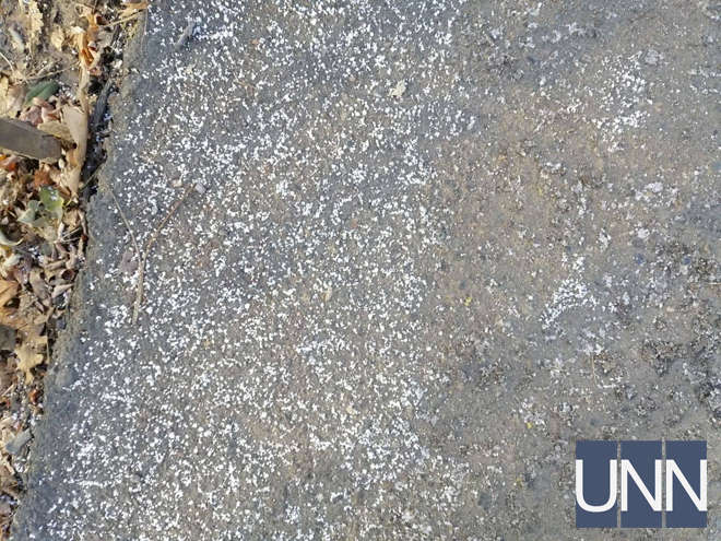 Мелкий снег наблюдается в разных районах Киева, в частности, в Голосеевском.