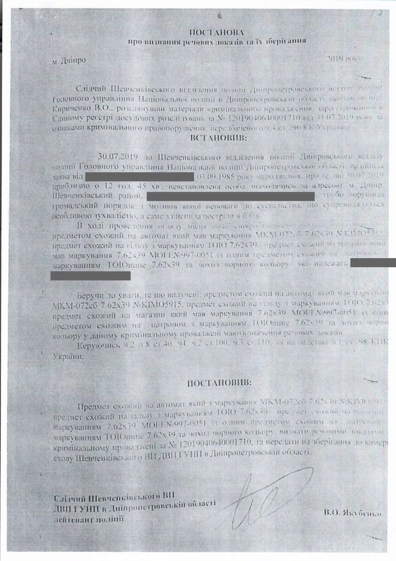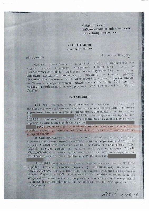 Когда владельцы помещения на нижнем этаже обнаружили дырку в потолке, они позвонили в полицию. На место происшествия выехали представители райотдела, включая Н. Ткаченко и О. Волынец. Гражданин П. добровольно впустил их в свою квартиру, предъявил карабин и документы о его регистрации. Полицейские удостоверились, что это был одиночный случайный выстрел в пол, без реальной угрозы жизни и здоровью окружающих. Владельцам нижнего помещения были принесены извинения и заверения в том, ущерб от дырки в полу и потолке будет компенсирован, что и было в последствие сделано. Полицейские опросили очевидцев и свидетелей и составили протокол. По закону гражданину П. предстояло выплатить административный штраф в размере 850 грн и инцидент, казалось бы, был исчерпан. Однако, здесь криминальная история только начинается…