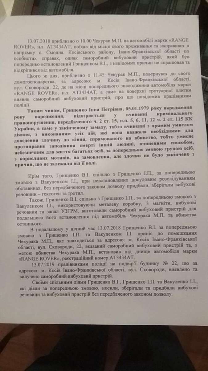 Согласно тексту подозрения Инне Грищенко, которым располагает "КП" в Украине", жертвой покушения должен был стать житель Косова Михаил Чекурак, 1958 года рождения. А события происходили летом 2018 года.