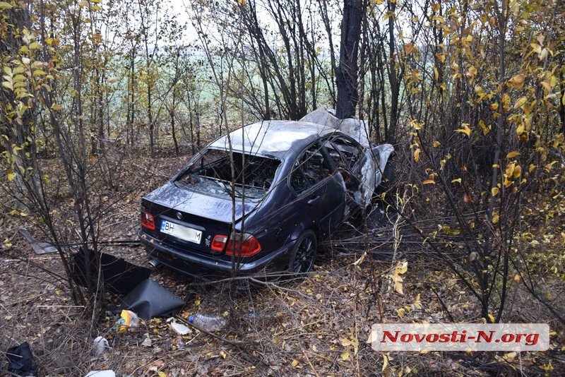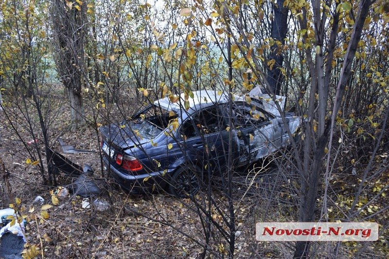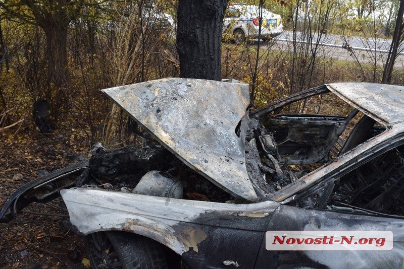Автомобиль ехал по трассе со стороны Одессы в направлении Николаева. Не доезжая примерно 3-4 км до села Половинки водитель не справился с управлением, автомобиль резко изменил траекторию движения, пересек встречную полосу, слетел в кювет и врезался в дерево. От мощного удара автомобиль загорелся.
