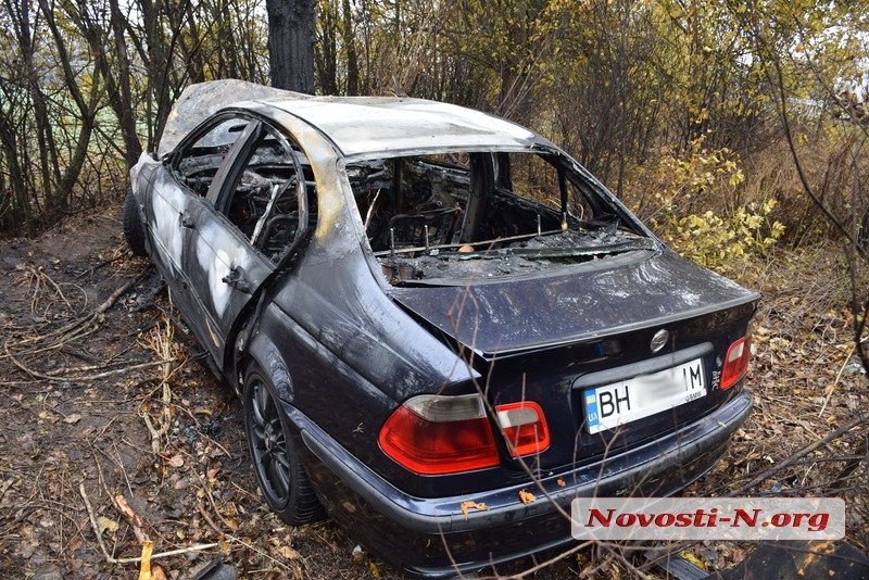 Утром в четверг, 7 ноября, на трассе Одесса-Николаев слетел с дороги и загорелся легковой автомобиль BMW.
