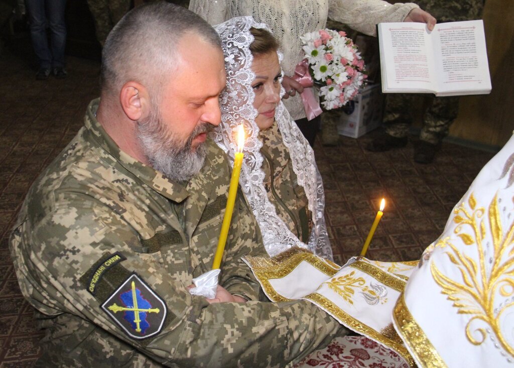 Обряд венчания на передовой провел священник Украинской православной церкви отец Феодосий. Были цветы, кольца, искренние поздравления от побратимов и счастливые улыбки, но от свадебного застолья Героям пришлось отказаться, потому что сразу после церемонии бракосочетания молодожены вернулись к исполнению своих служебных обязанностей.