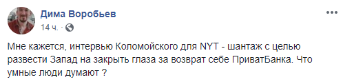 Блогер Алекс Нойнец также считает, что Коломойский пытается шантажировать США.