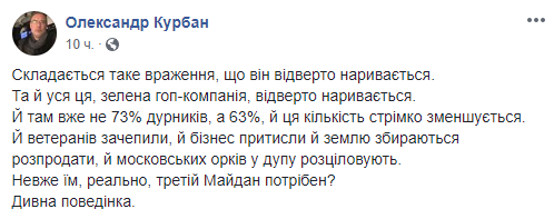 Политтехнолог Александр Курбан пишет, что Коломойский нарывается на третий Майдан.