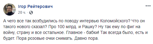 Политолог Игорь Рейтерович не удивлен заявлениям Коломойского, считая, что украинцам давно стоит снять розовые очки.