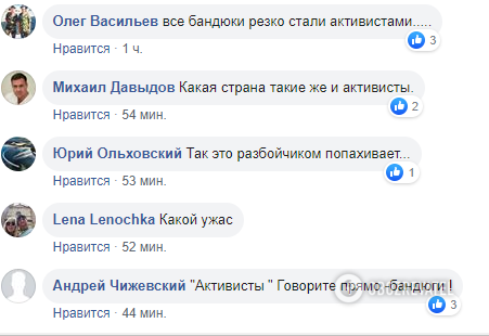 "Все бандюки резко стали активистами", "Какая страна, такие же и активисты", "Какой ужас", "Активисты... Говорите прямо - бандюги", – отмечают они.