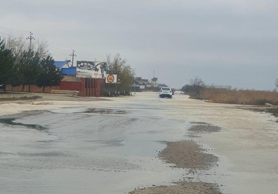Хоть сообщение между Кирилловкой и селом Степок и не нарушено, на некоторых участках дороги наблюдаются переливы воды до 15 см. А вот остров Бирючий отрезан от суши — песчаная дорога покрыта водой.