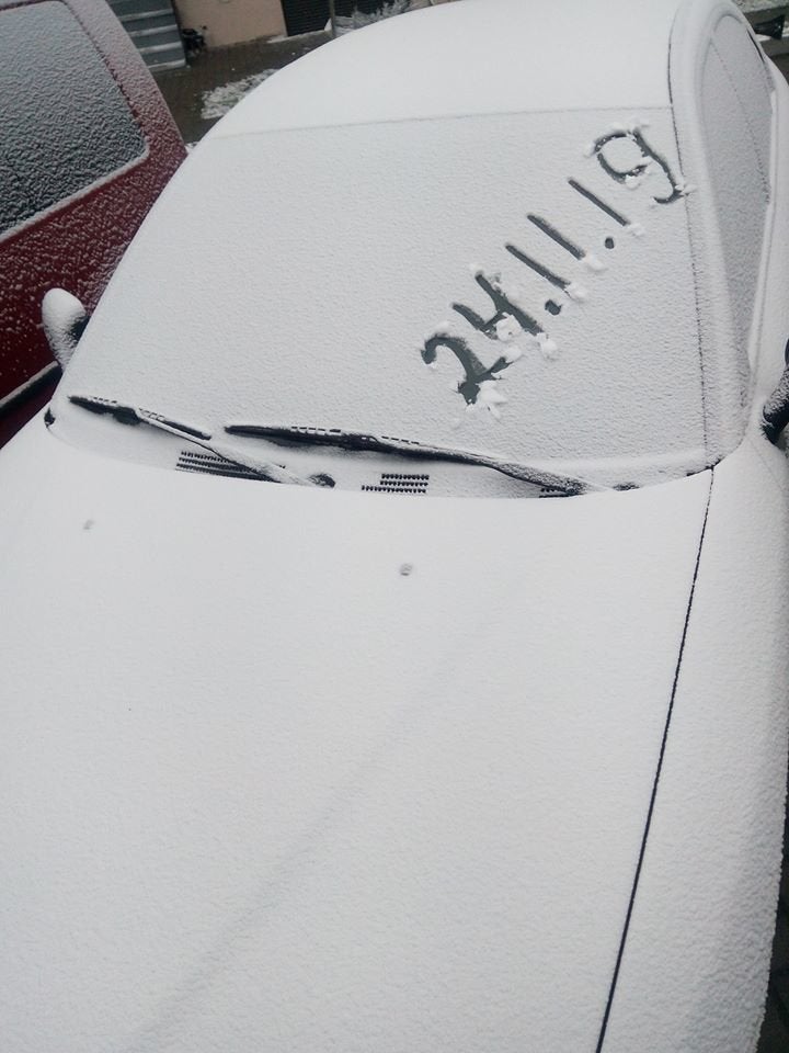 Не дождавшись зимы, снег выпал в воскресенье, 24 ноября, в Рясном и на Левандовке. На фото, опубликованных местным жителем в Сети, видно, что снега немного, однако он покрыл землю и припорошил припаркованные автомобили.