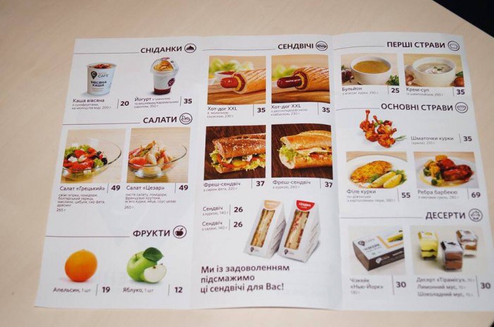 сендвіч, який на початку роботи оператора коштував 37 гривень, сьогодні продають вже за 75 гривень. Каша, яку в 2016-ому пропонували за 20 гривень, зараз обійдеться у 39 гривень.