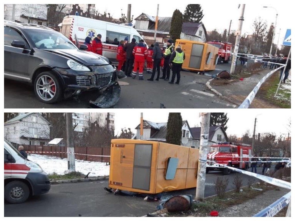 Раздавило пассажиров: Под Киевом Porsche перевернул маршрутку