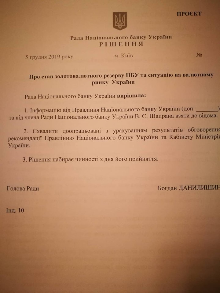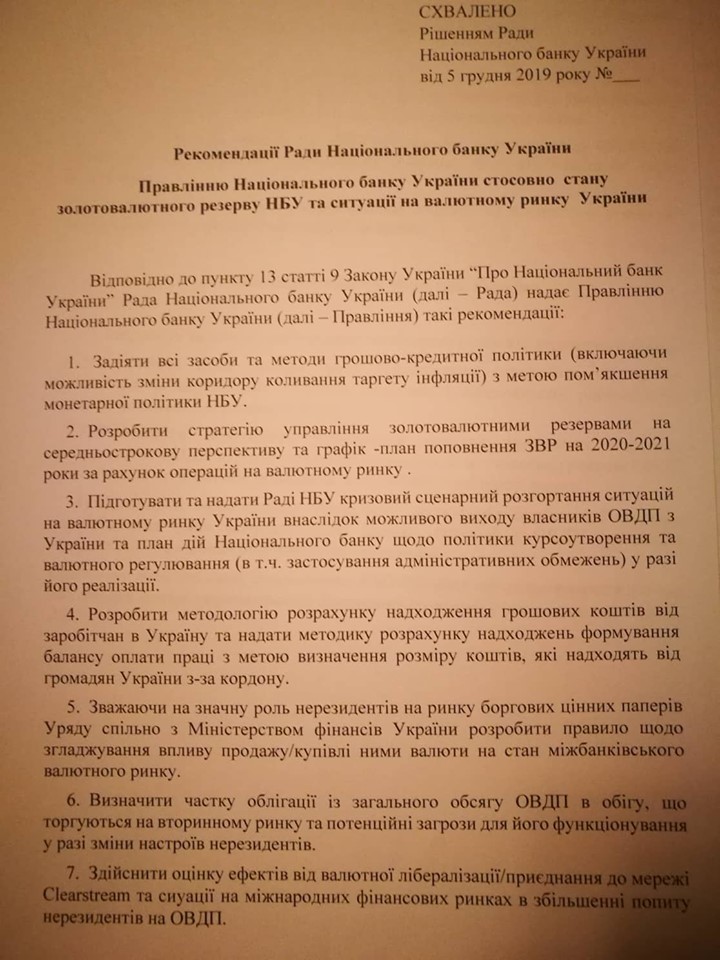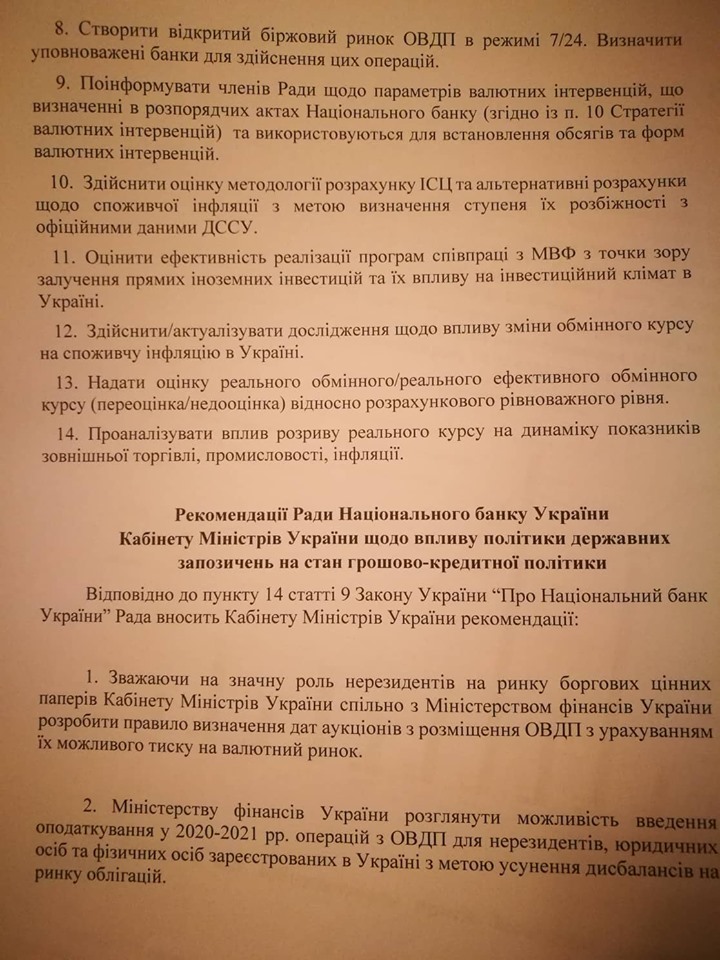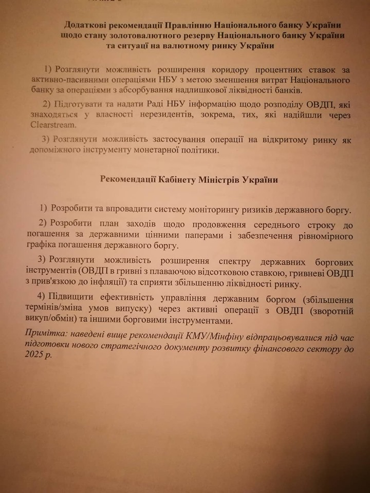 Редакция издания получила копию проекта решения совета НБУ. Как выяснилось, Данилишин опубликовал не все рекомендации.